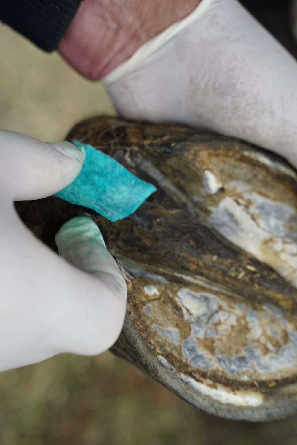 - Getränkte Hufpflege-Pads für gezielte Anwendung in Strahlfurchen