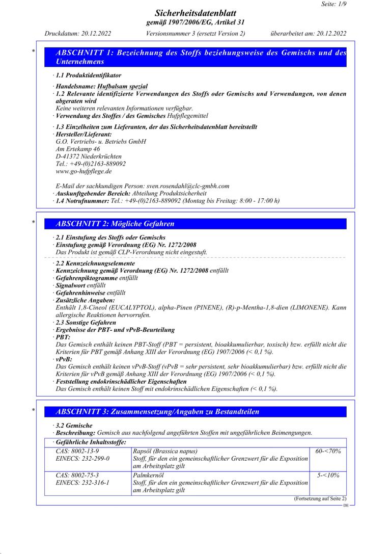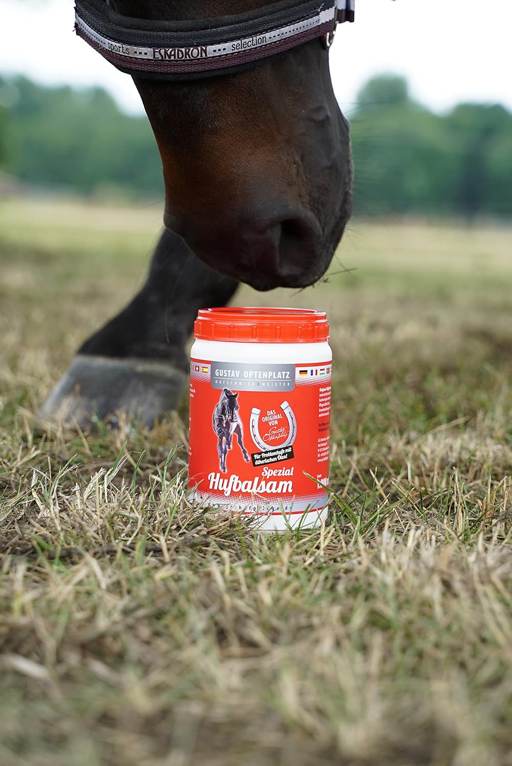 Der Hufbalsam Spezial mit ätherischen Ölen wie Eucalyptol, Pinene und Limonene ist somit eine hochwertige Lösung für Pferdebesitzer, die Wert auf eine nachhaltige und effektive Hufpflege legen. Mit seiner tiefenwirksamen Formel unterstützt er die natürliche Regeneration des Hufes, stärkt die Hornstruktur und hilft dabei, Probleme wie brüchige Hufe, Hornspalten oder Strahlfäuleempfindlichkeit vorzubeugen. So bleibt der Pferdehuf langfristig gesund, stabil und belastbar.