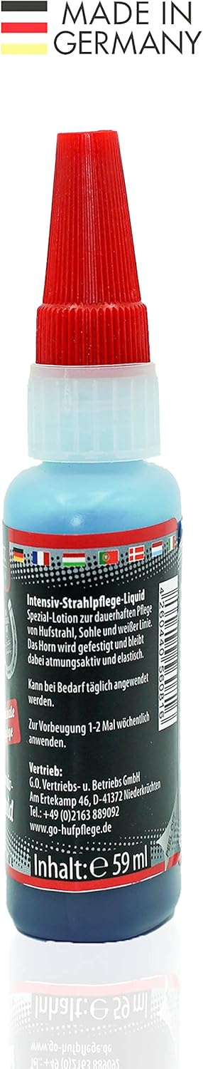 - Inhalt: 59 ml Intensiv-Strahlpflege Liquid für Pferdehufe