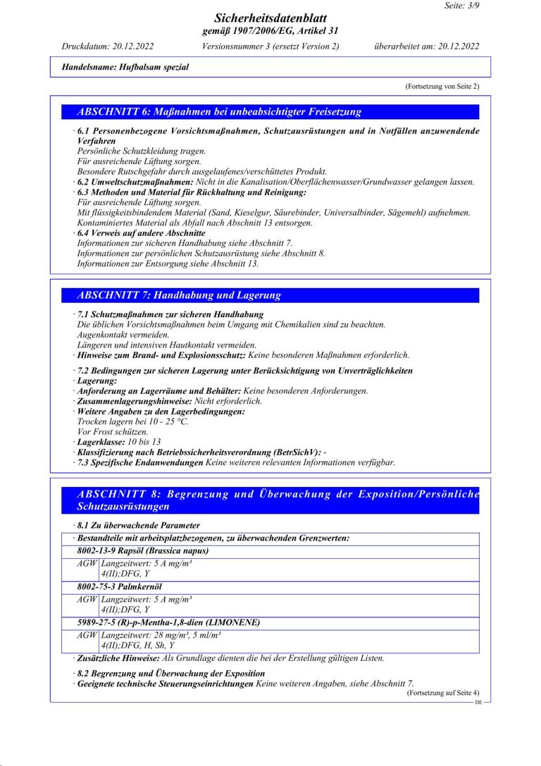 Der Hufbalsam Spezial mit ätherischen Ölen wie Eucalyptol, Pinene und Limonene ist somit eine hochwertige Lösung für Pferdebesitzer, die Wert auf eine nachhaltige und effektive Hufpflege legen. Mit seiner tiefenwirksamen Formel unterstützt er die natürliche Regeneration des Hufes, stärkt die Hornstruktur und hilft dabei, Probleme wie brüchige Hufe, Hornspalten oder Strahlfäuleempfindlichkeit vorzubeugen. So bleibt der Pferdehuf langfristig gesund, stabil und belastbar.